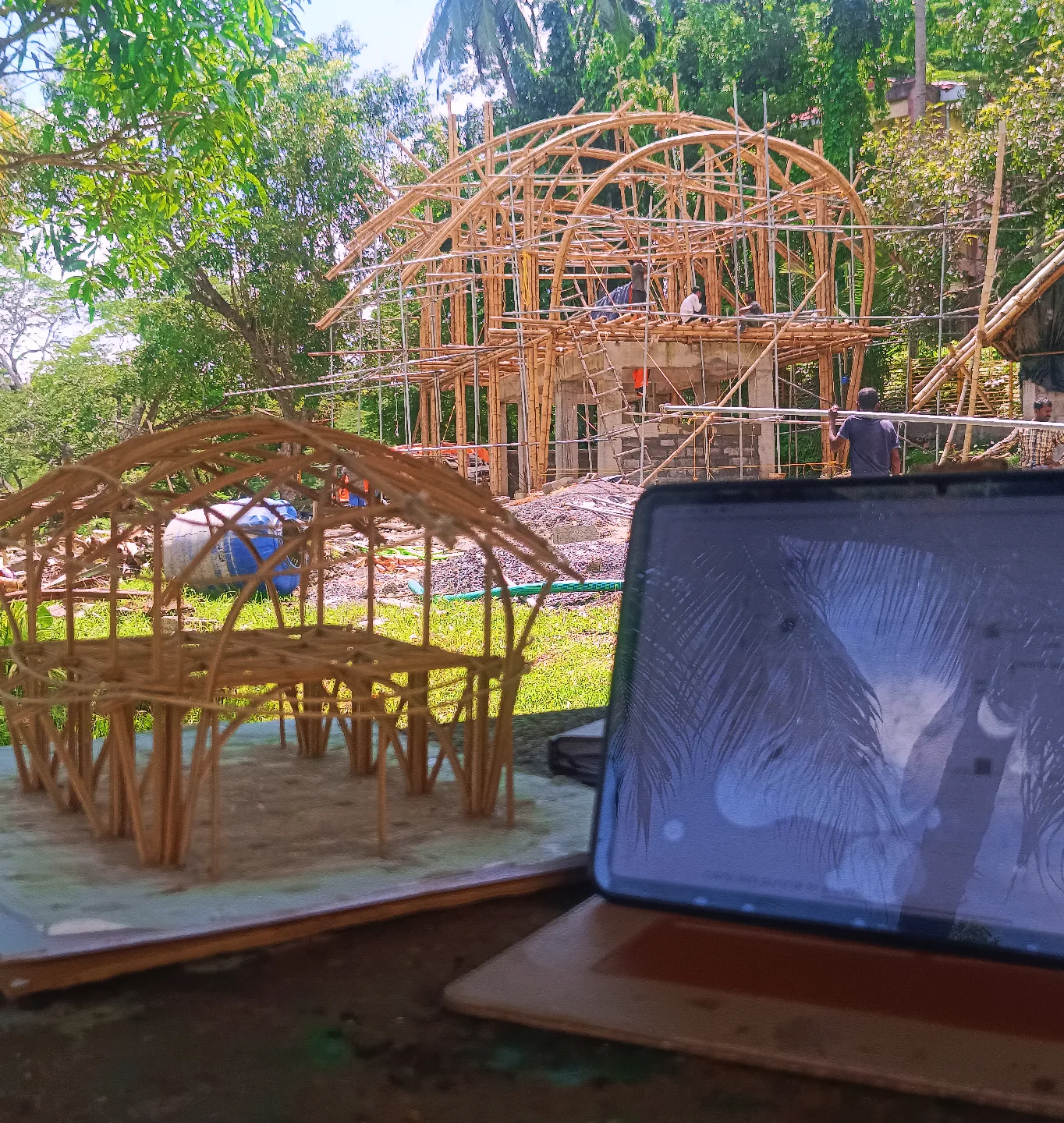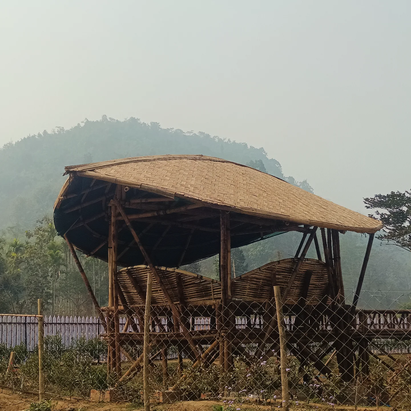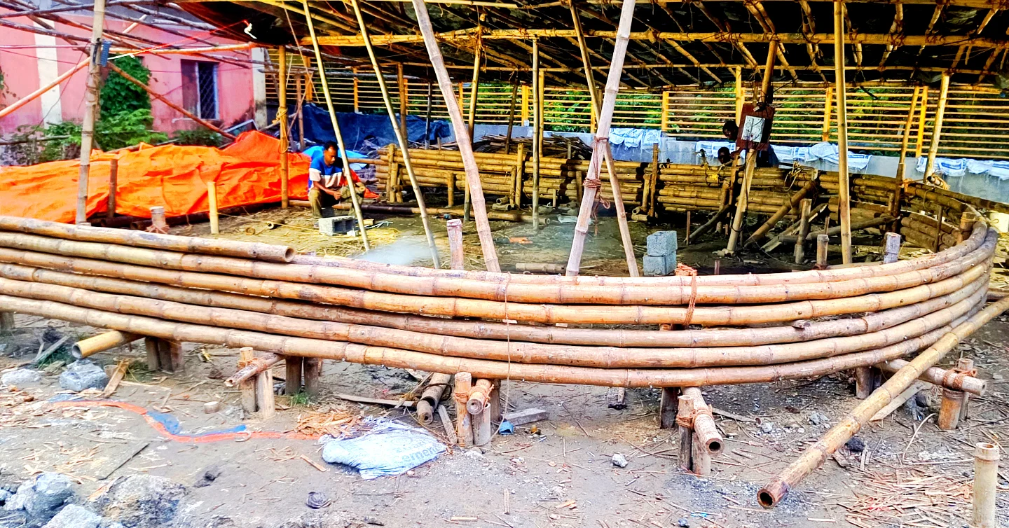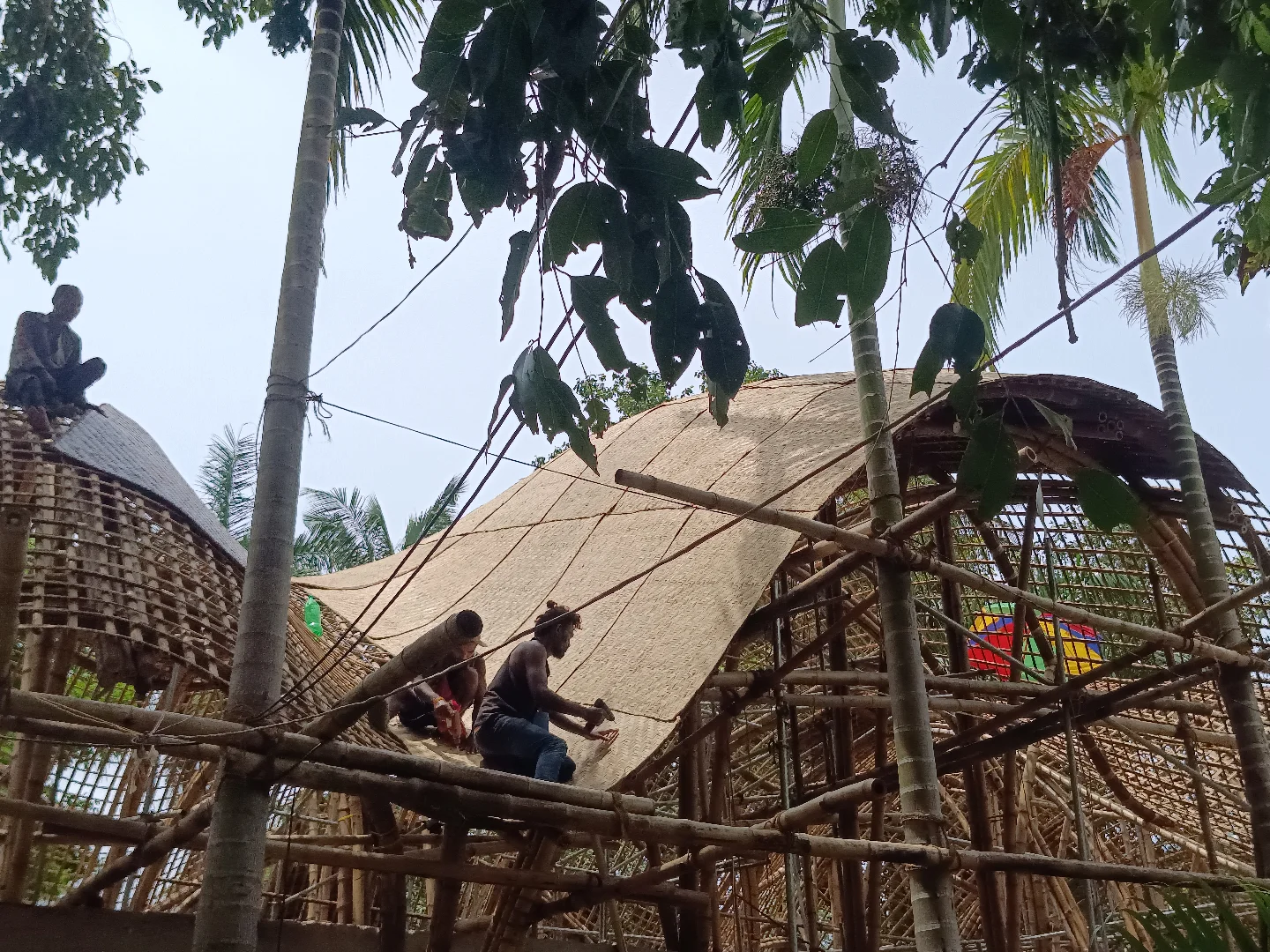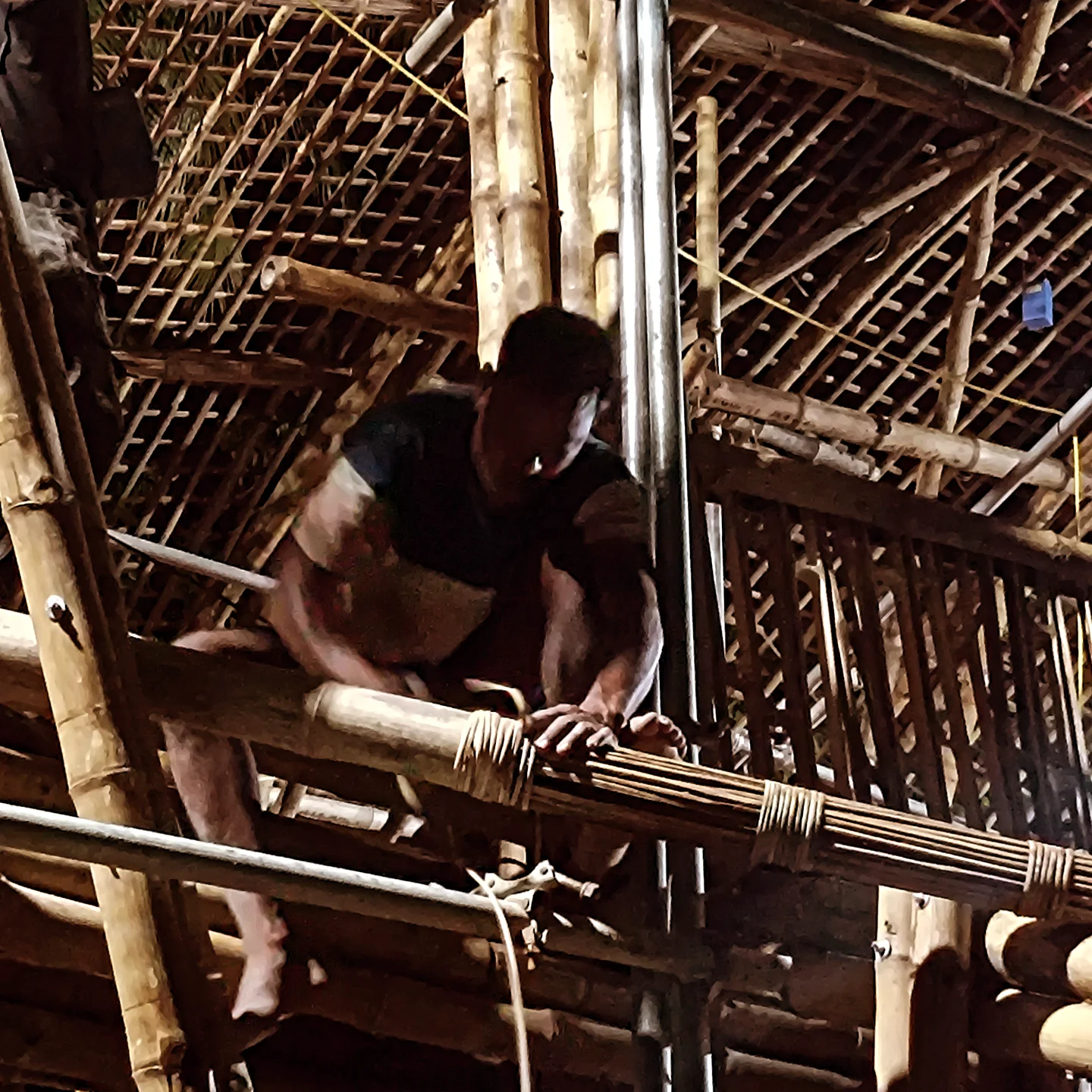 The collective specialises in designing and constructing sustainable structures using bamboo, from traditional stilt-houses (inspired by Mishing heritage) to contemporary experimental designs - including hyperbolic structures, modern joinery patterns, and bamboo-based architectural elements. Their work spans traditional craftsmanship and innovative engineering, combining species-specific selection, harvesting, natural treatment of bamboo materials (e.g. water immersion, borax/boric treatment, split-smoothing), and high-quality execution.