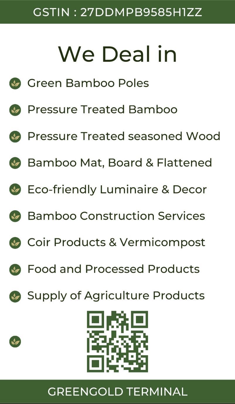 Greengold Terminal is a leading Exporter, Raw Material Supplier, and Manufacturer specializing in sustainable materials—including Pressure Treated and Non-Treated Bamboo, Coir, Food, Agro, and Recycled materials.